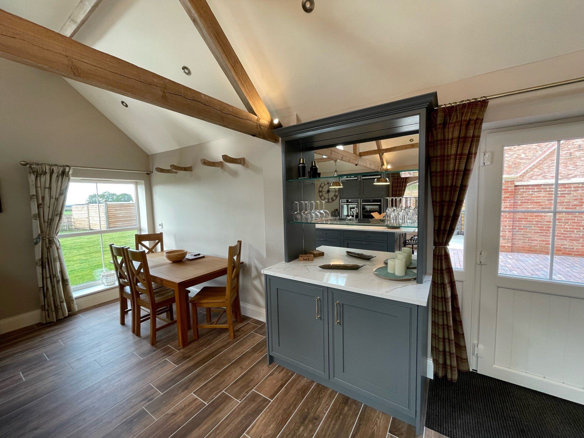 As shown in the last two photos, we have kept the original beams in what is now the main living, kitchen and dining area which again brings character to this property.