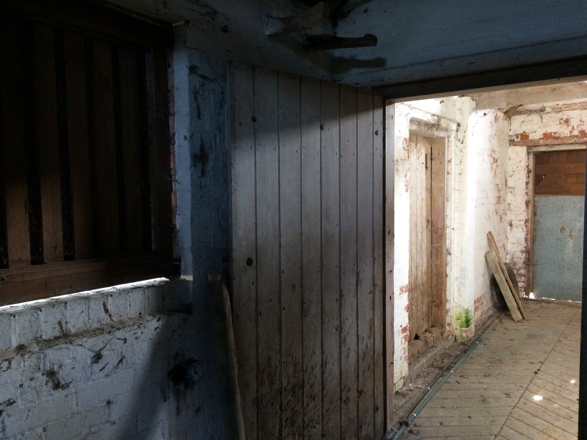 Above, the photo to the far right, shows the door that now separates the living, kitchen, dining area and the entrance. We were really unsure whether to keep this door in the property because it has grooves in the bottom where the horses have kicked the door but everyone who has seen the property loves the character and the history behind it.